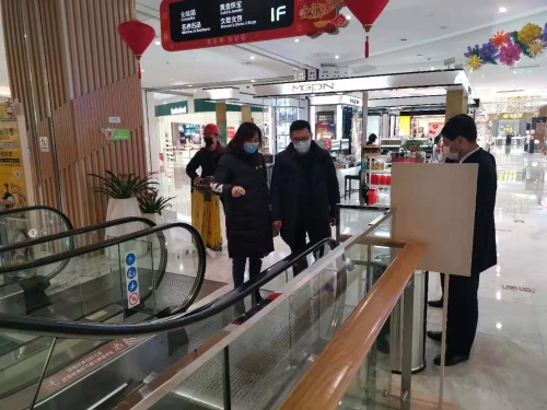 2月4日市局联合大市区各县区局组织对等人员密集型场所和部分小区开展电梯通风及消毒的专项检查,图为检查南金鹰自动扶手电梯。