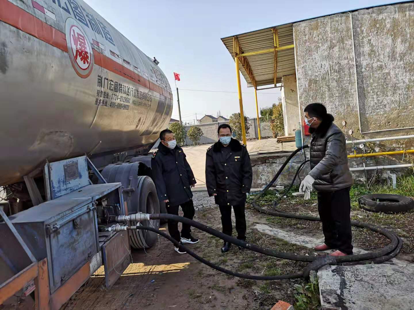 2月4日开发区综合执法局开展疫情防控期间特种设备安全大检查,图为检查步凤液化气充装站。